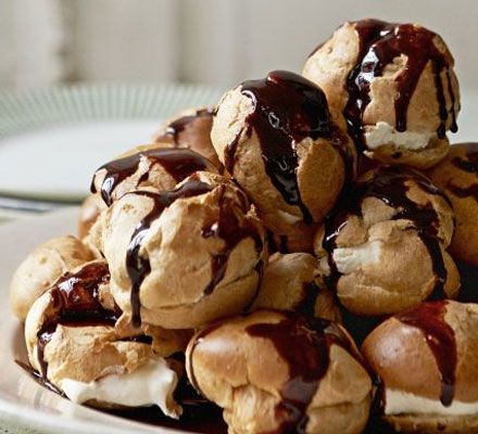 He held the basket out to Copper and she wasted no time taking one of the profiteroles.  Chocolate quickly adorned her mouth and nose, but she still looked suspiciously at Ignatius.  I gave a sigh of resignation.  Then I consoled myself with one of the pastries.Profiteroles