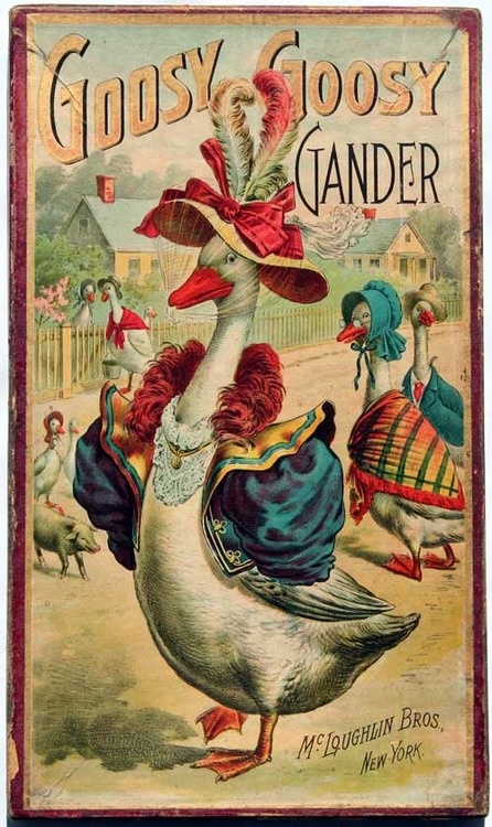 Which brings me to the last visitor.  She was a tall willowy woman, Gertrude Hobbs, administrator of the orphanage.  Her wire rimmed spectacles sat far down her nose.  She was very quiet, but nodded sharply to everything Ethel Farthing said.  She had a small head with a prominentnose and a long neck.  Those features combined with her honking laugh and the large bustle of her gown reminded me of a goose, a greedy goose waiting for a chance to peck away at something.Goosey Goosey