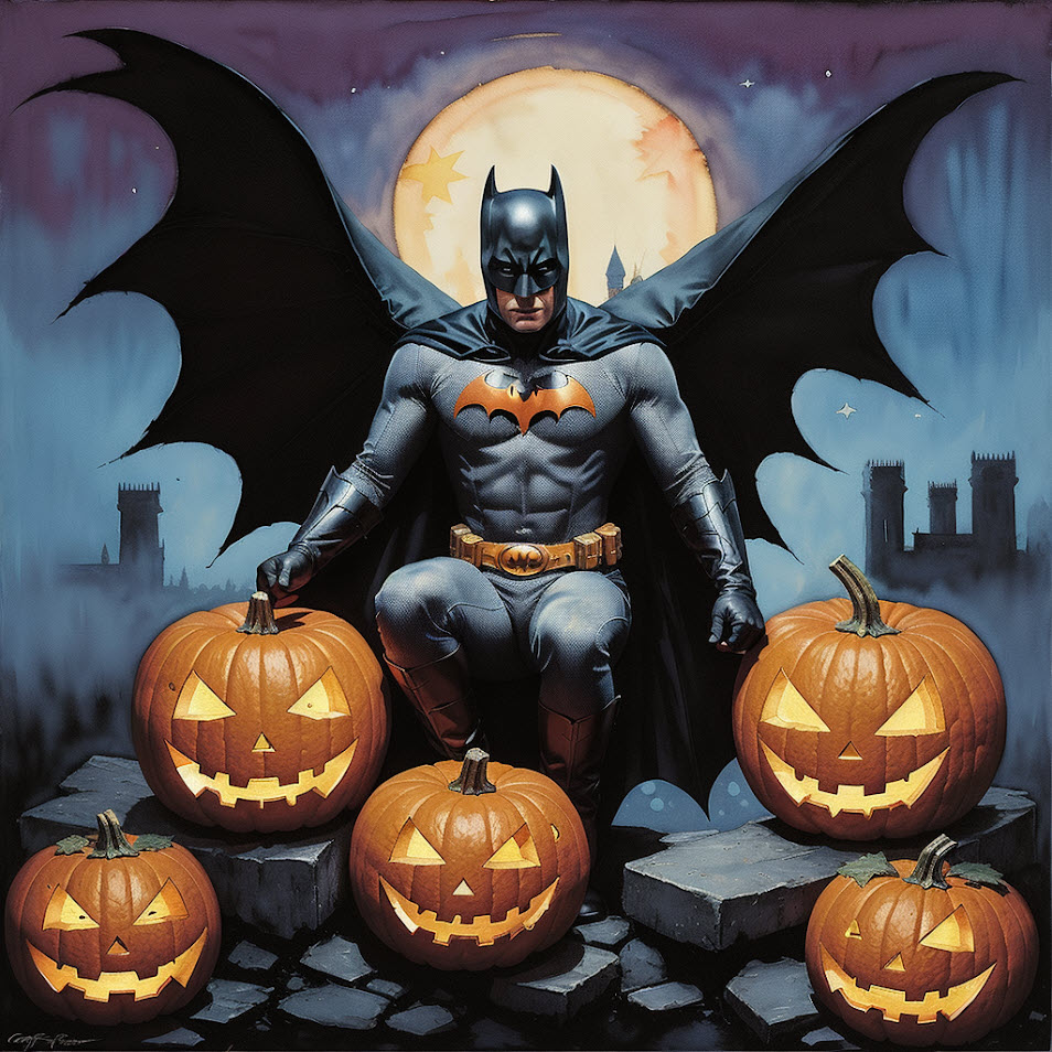 I wore my Batman costume; on Halloween, the night of gloom,