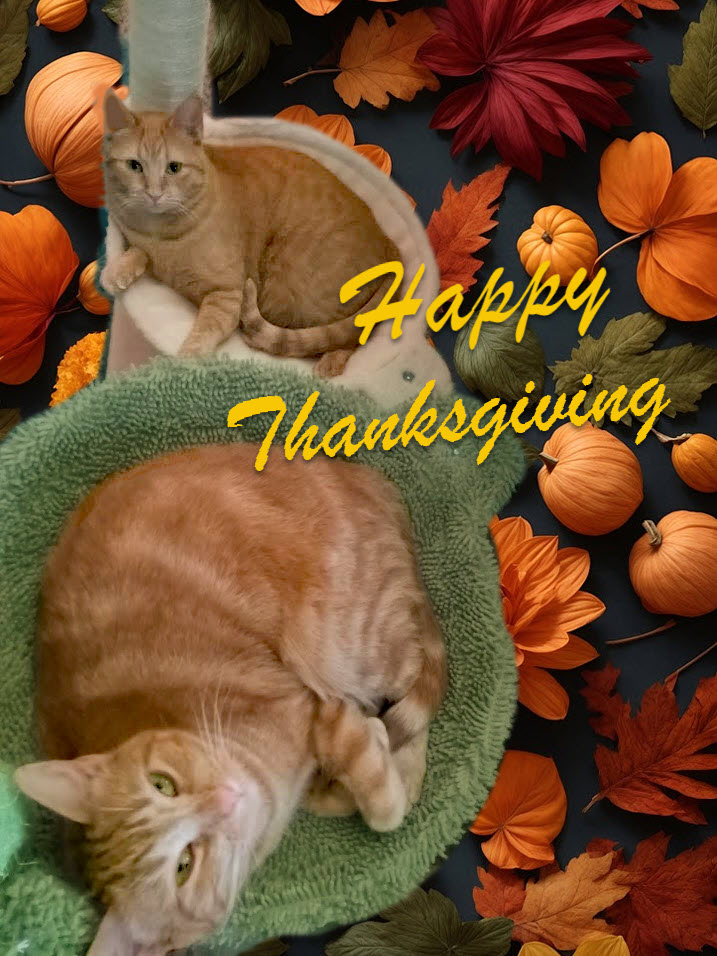 Happy Thanksgiving, Teagan.🍂 🦃🍁And a happy day for your two kitties. 🧡 Always thinking of you. Hugs, my moon friend. 🤗🎶