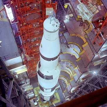 The next photograph shows the Saturn 5 vehicle for the Apollo 4 mission in the Vehicle Assembly Building. After the completion of the assembly operation, the work platform was retracted, and the vehicle was readied to rollout from the VAB to the launch pad. I don’t see a door anywhere, but just imagine how huge that area must have been.